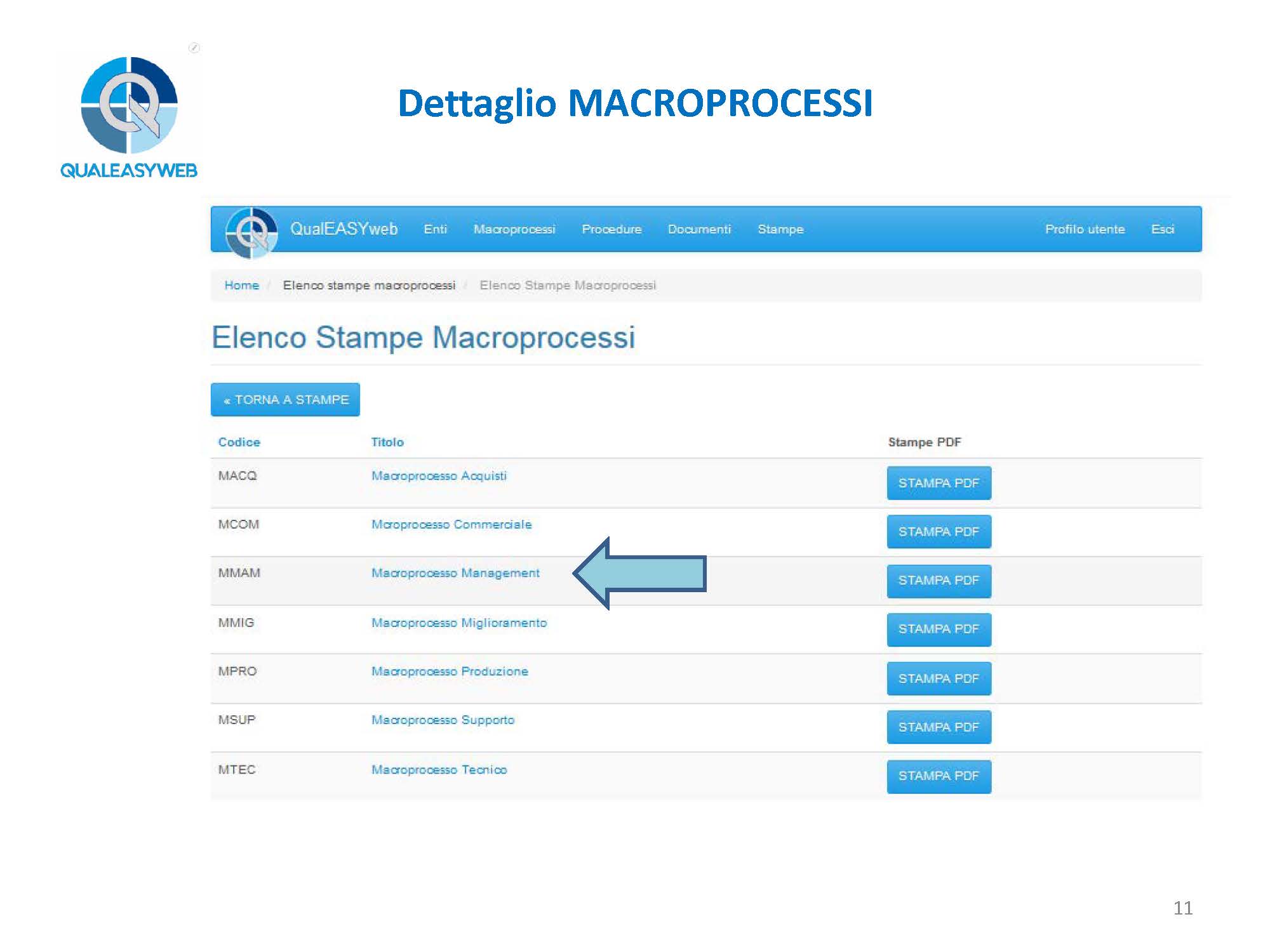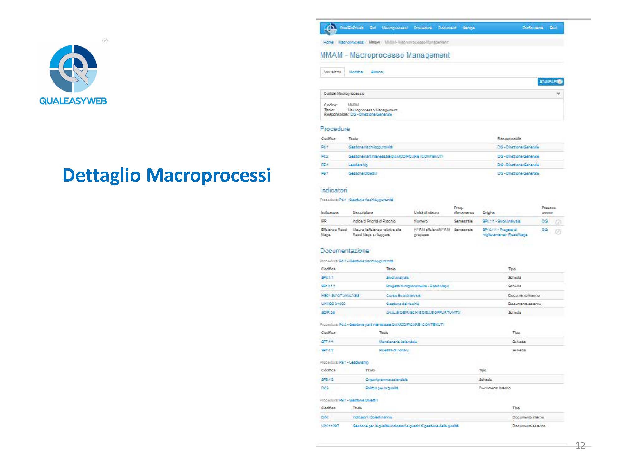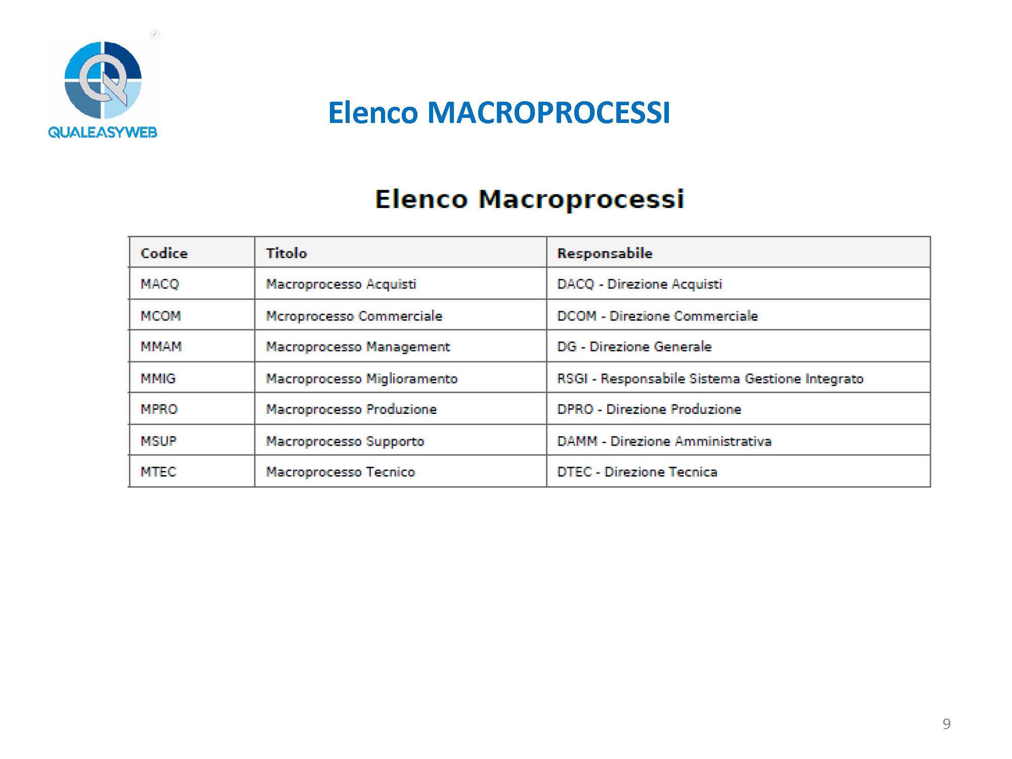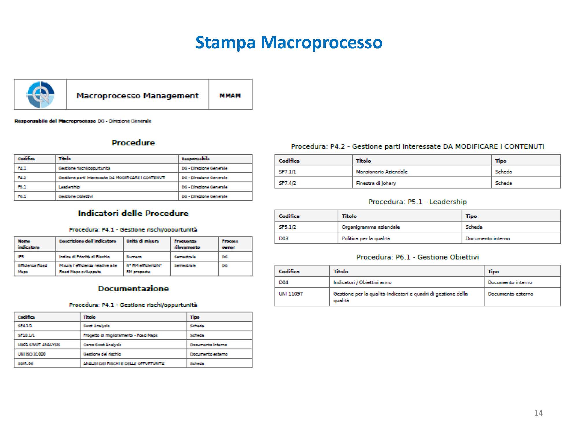 - l’elenco dei macroprocessi, oppure il dettaglio di ogni singolo macroprocesso,