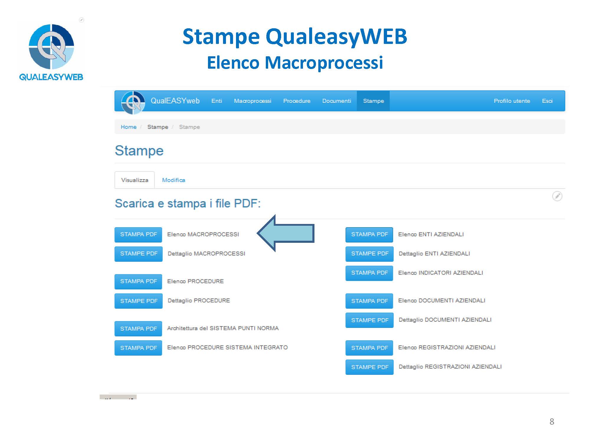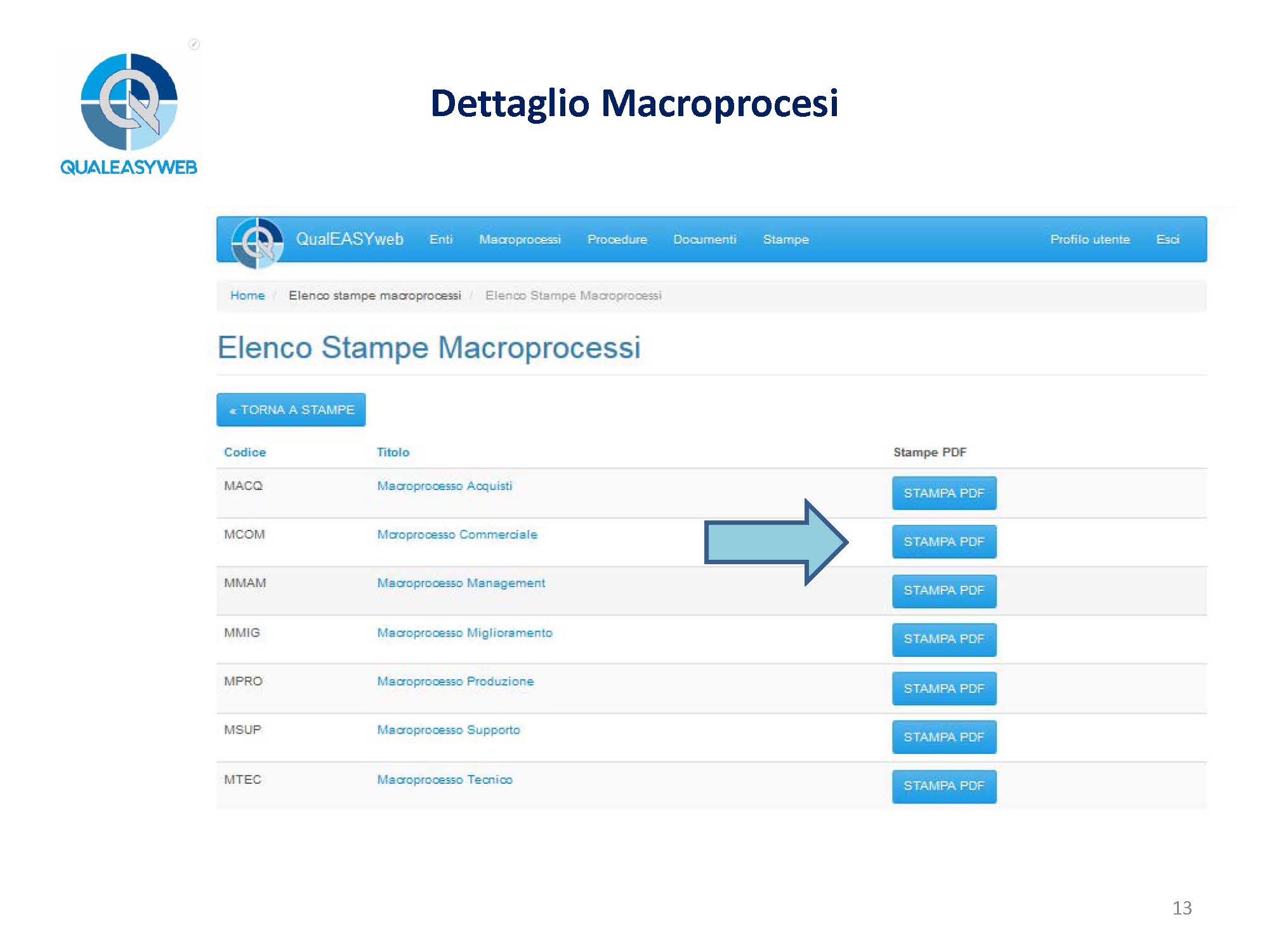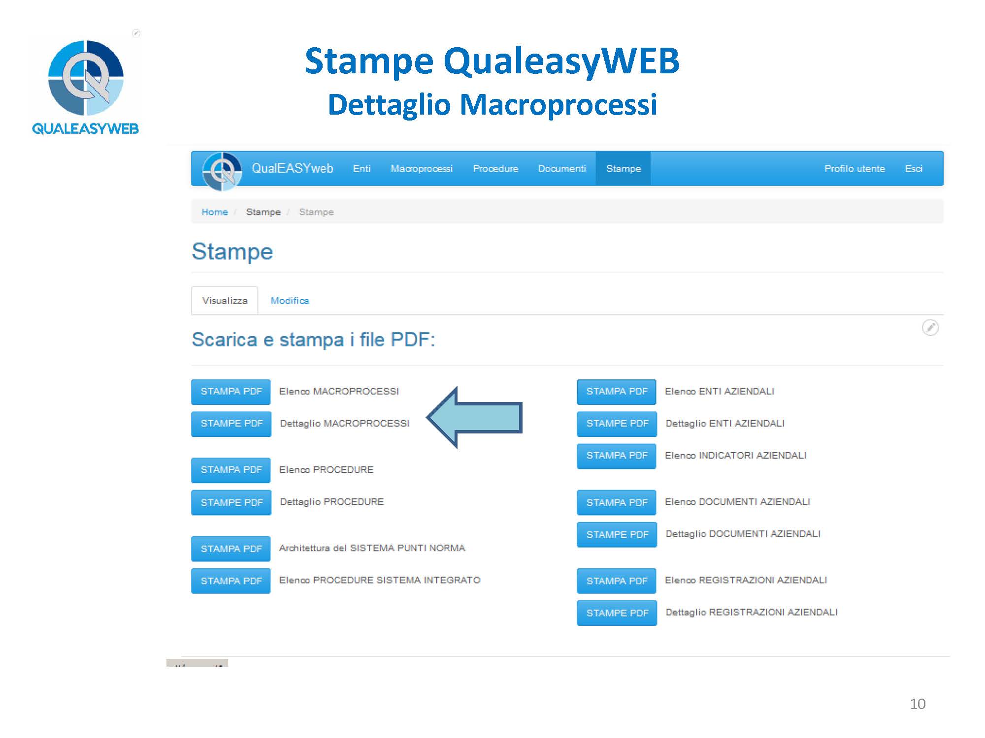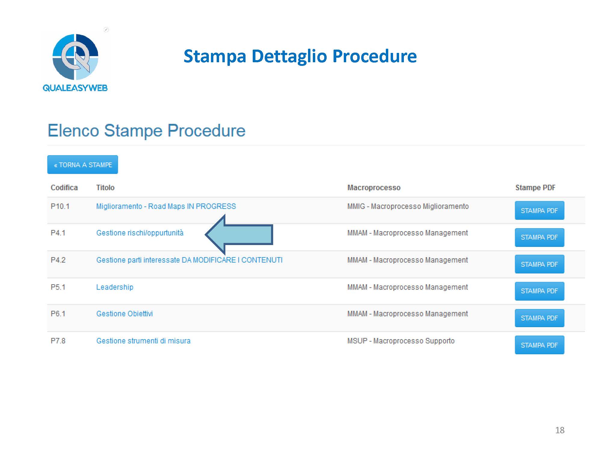 - l’elenco dei macroprocessi, oppure il dettaglio di ogni singolo macroprocesso,