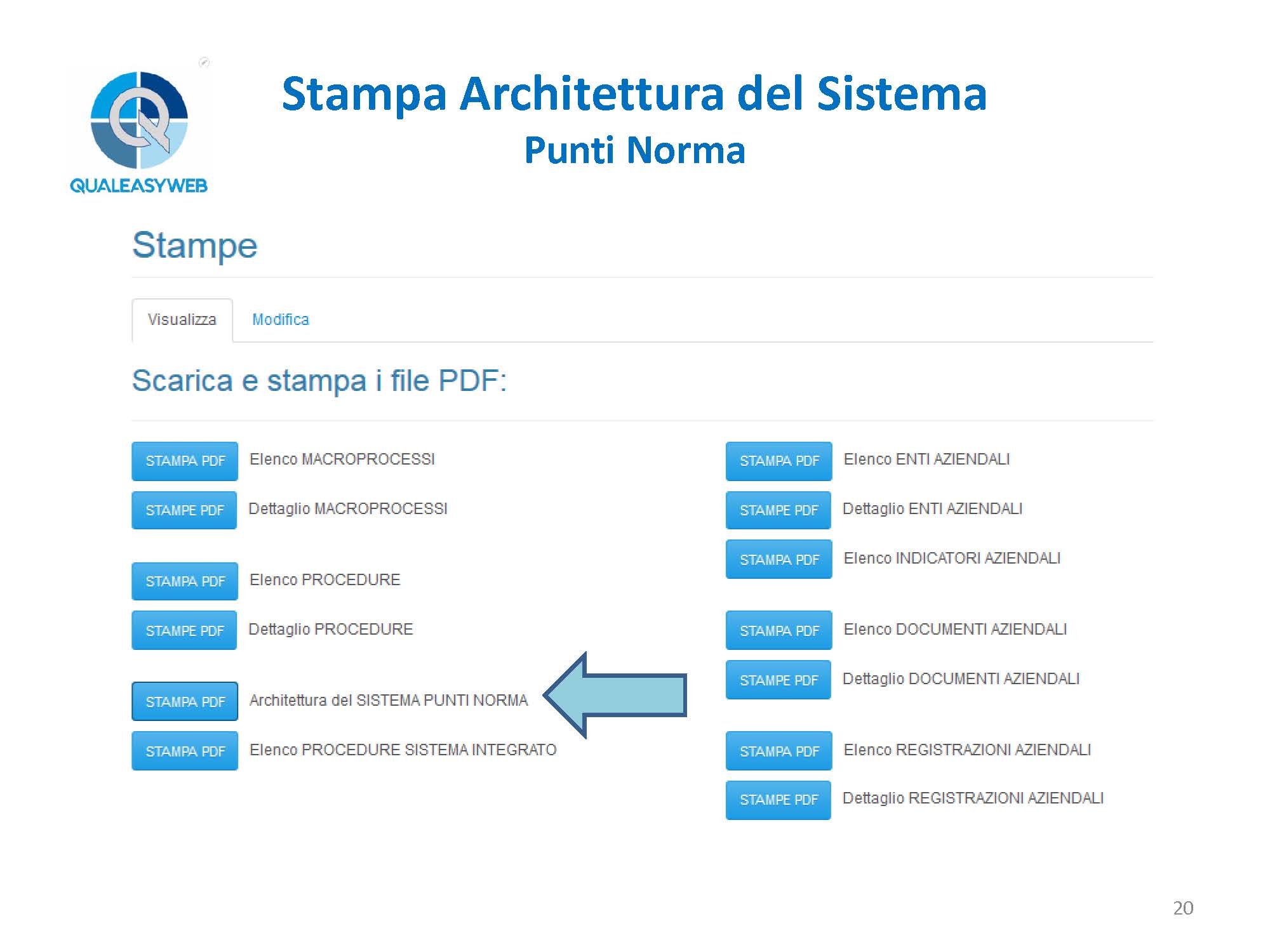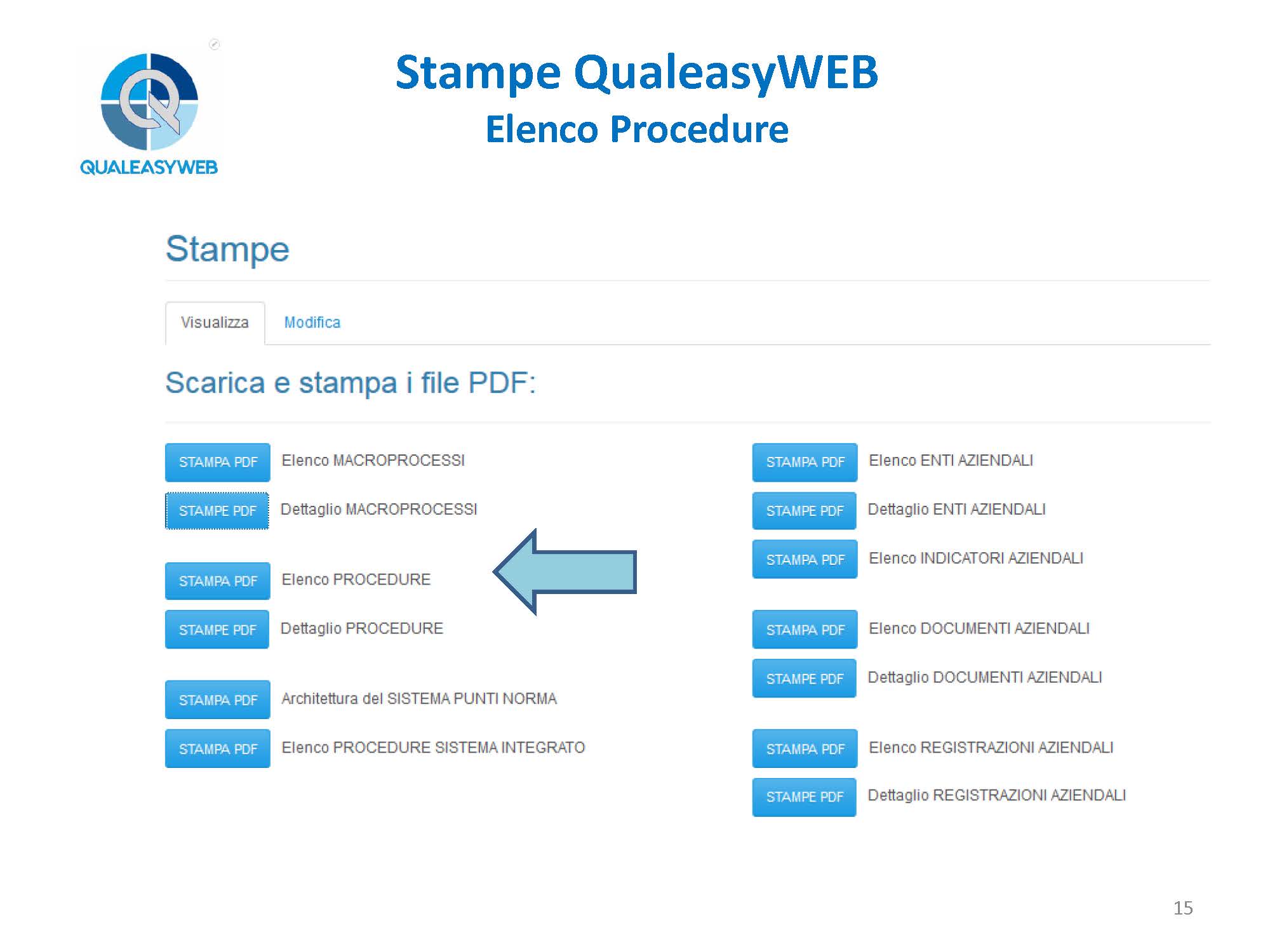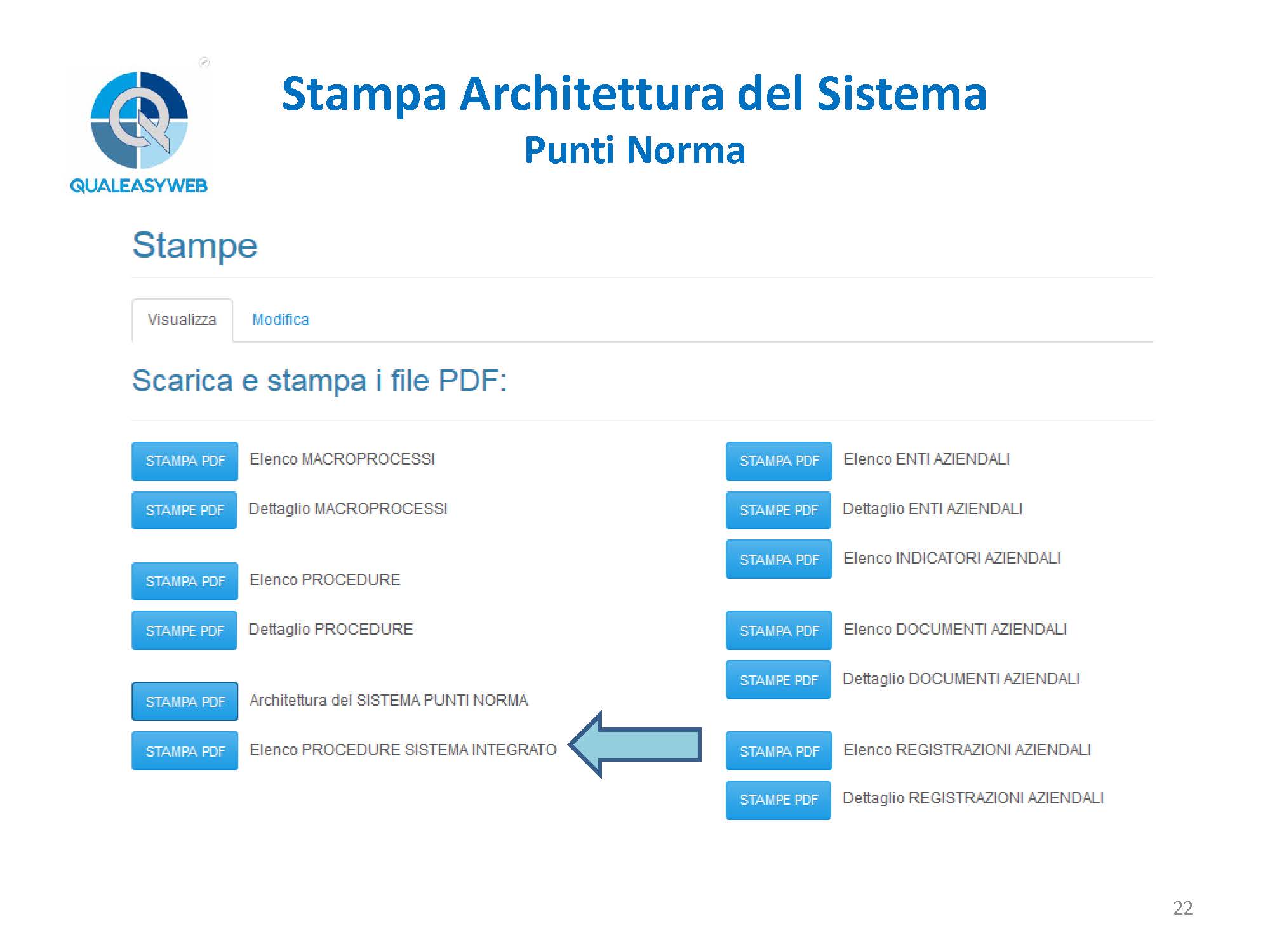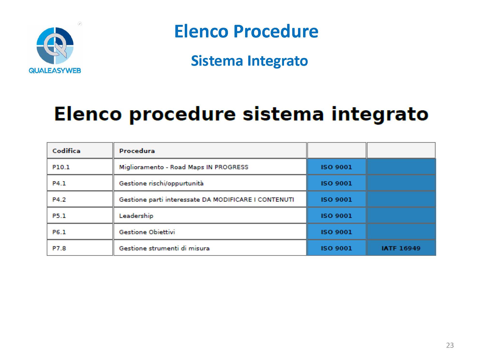 - l’elenco delle procedure del sistema integrato: