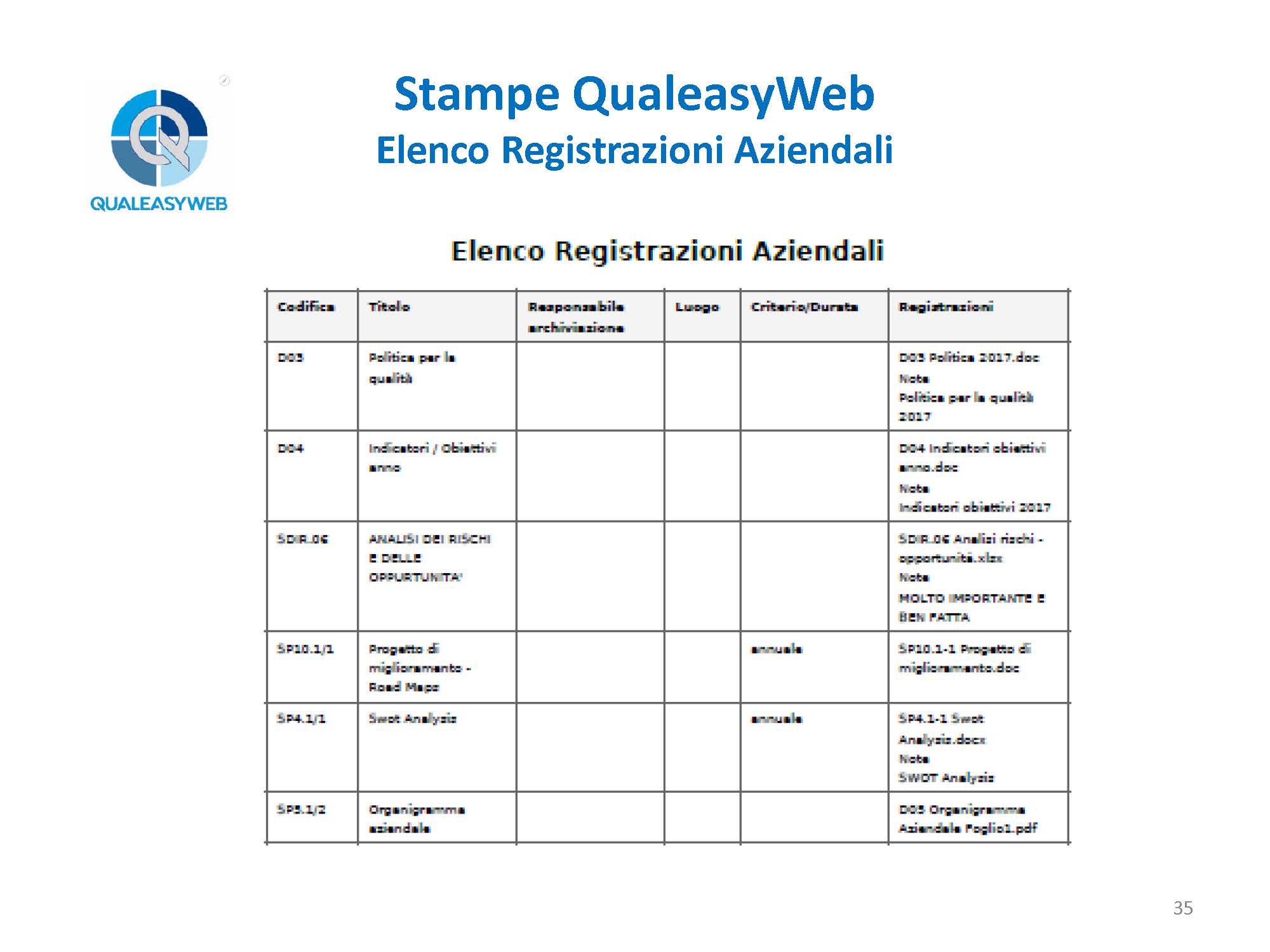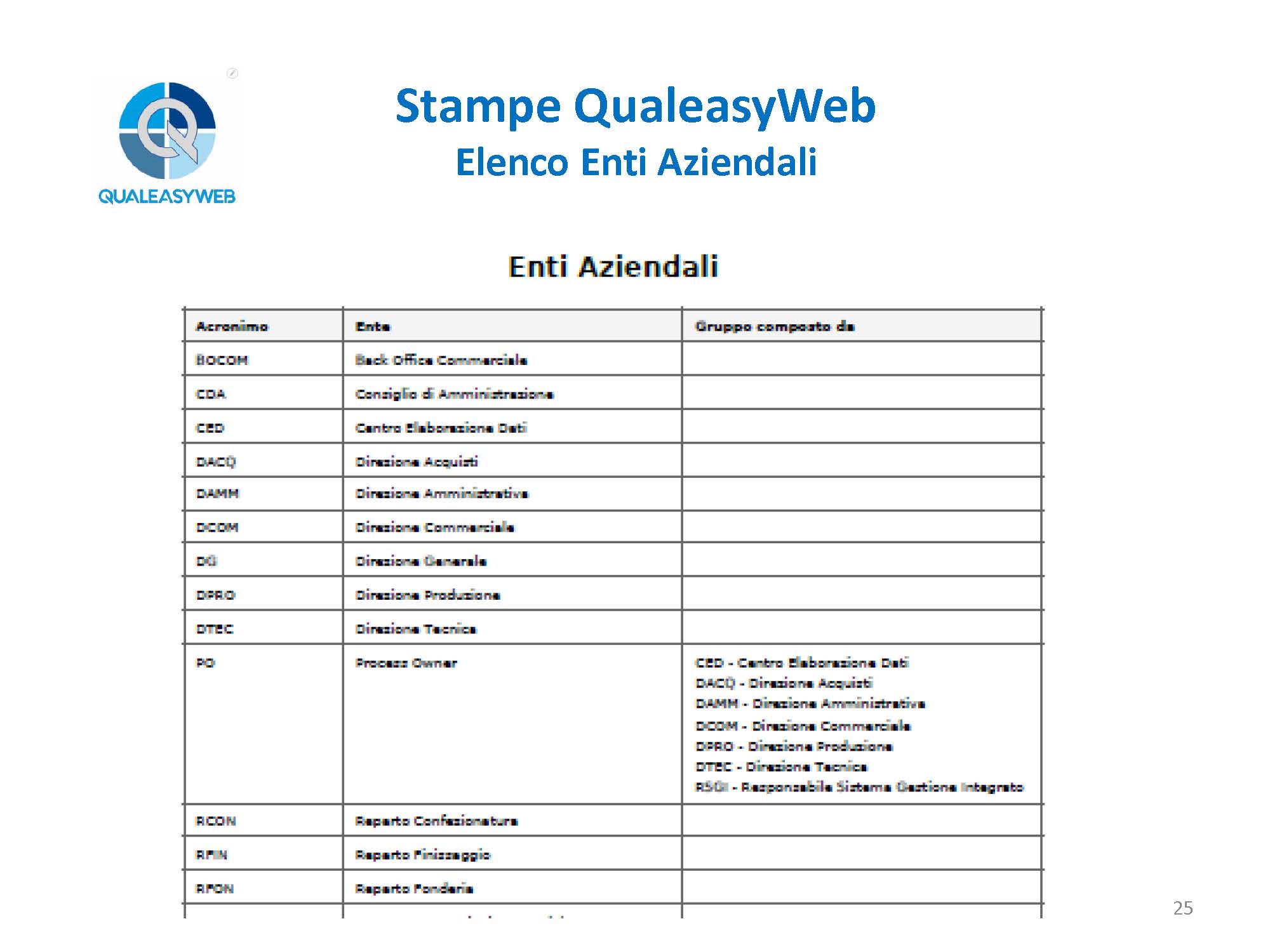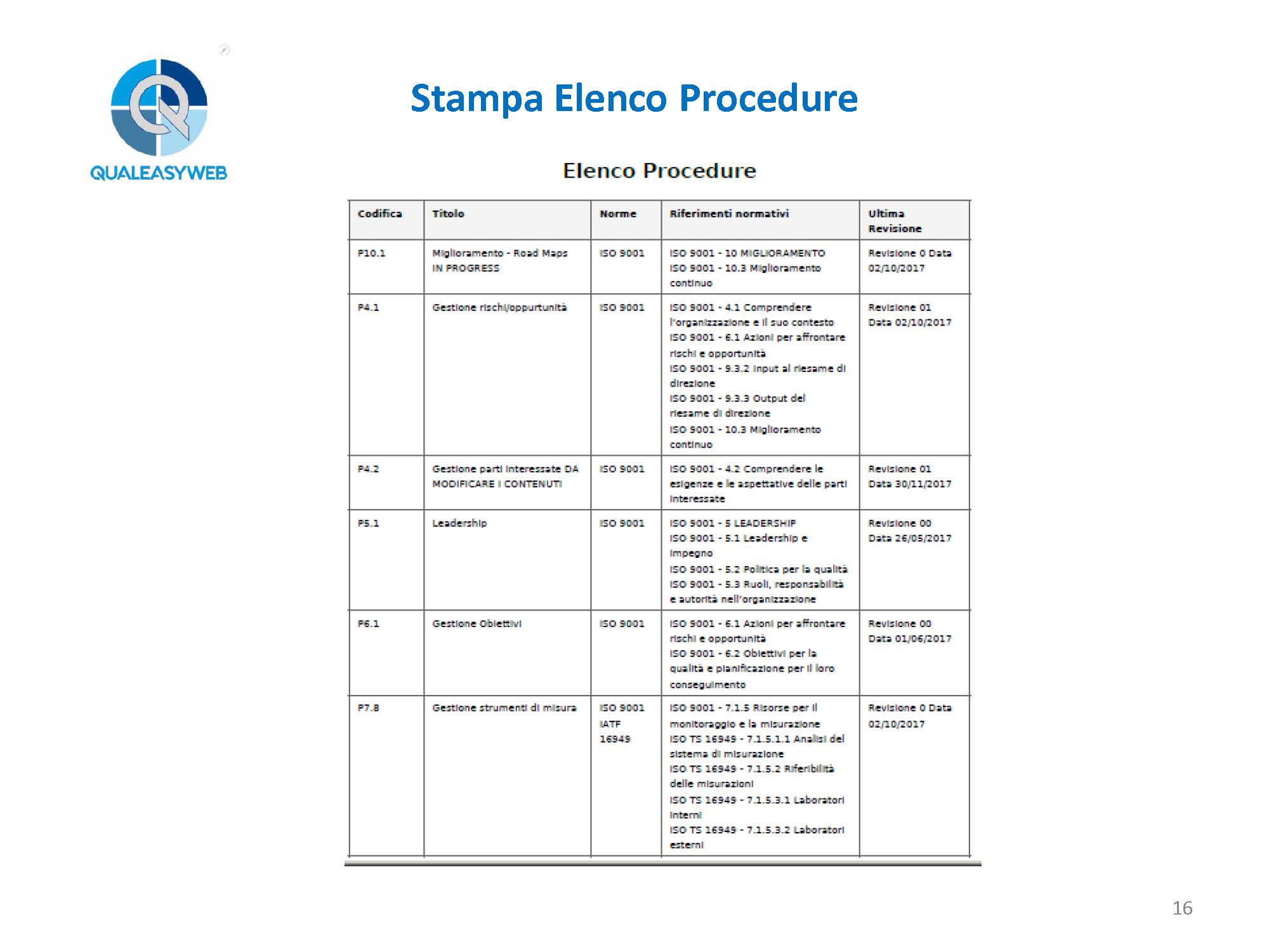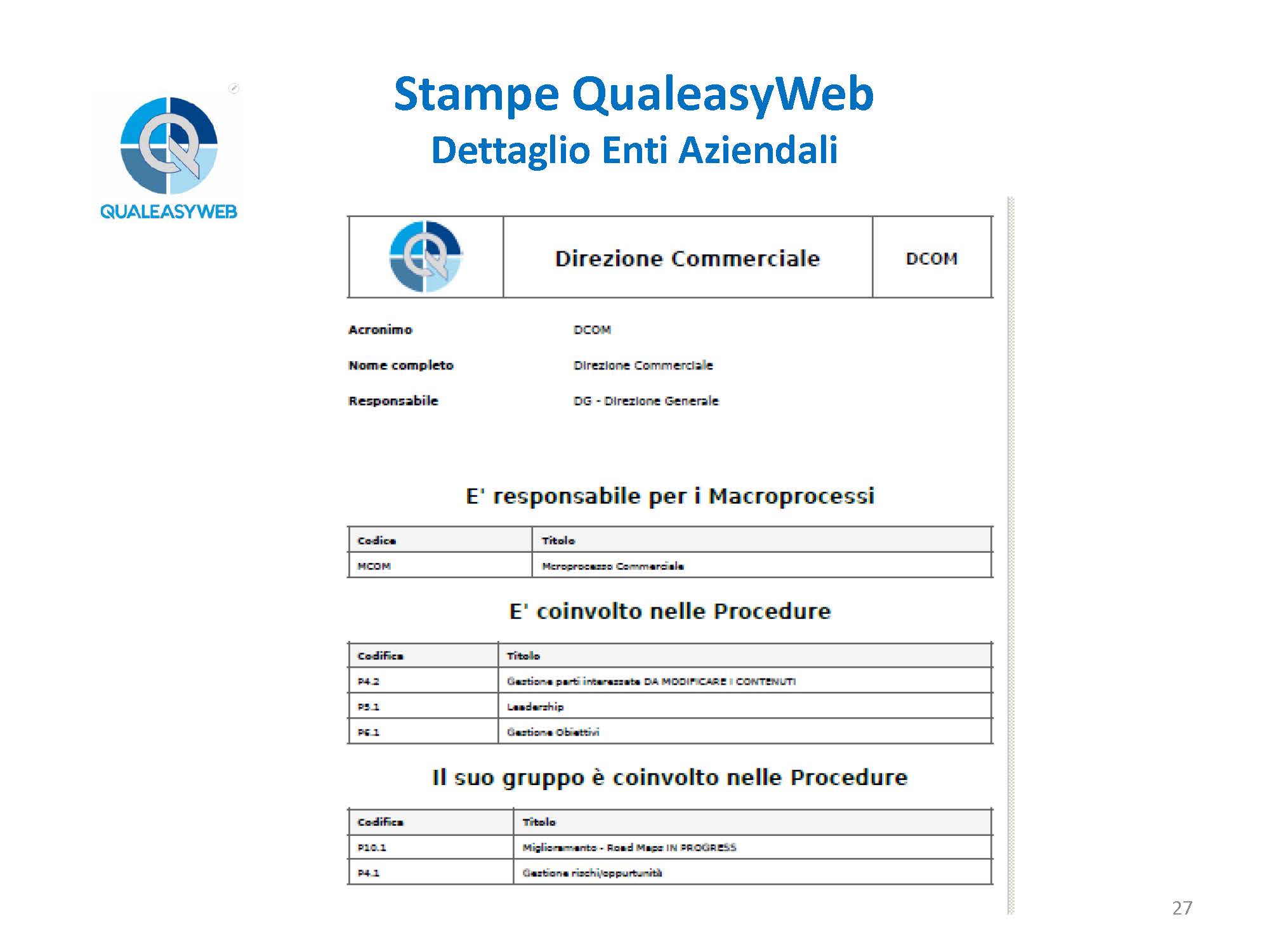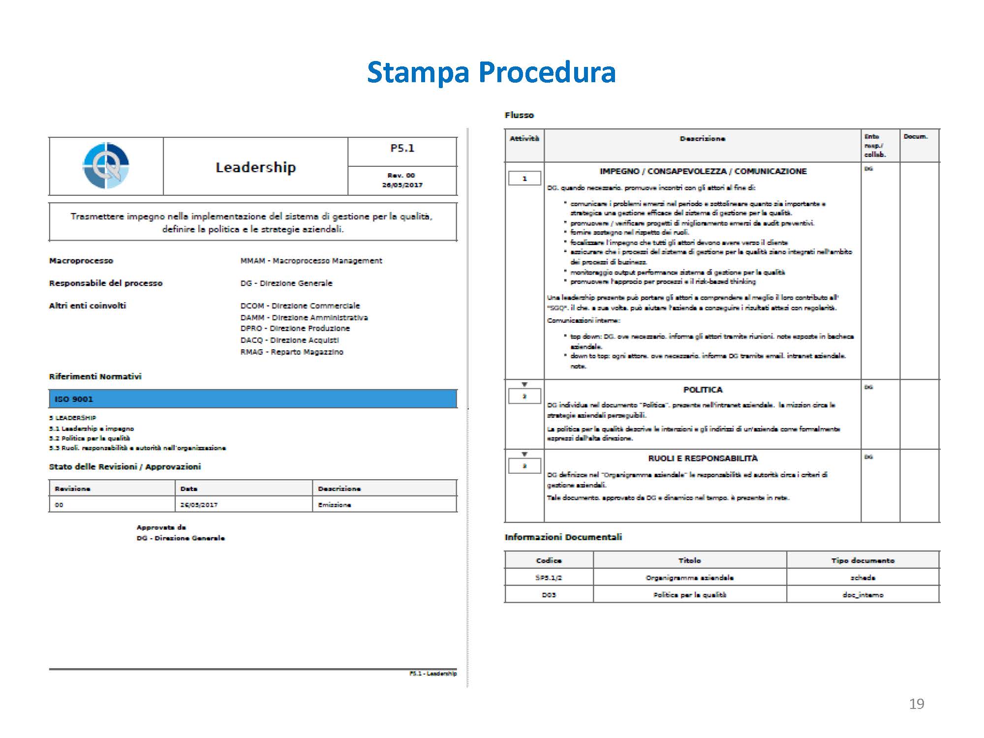 nel momento in cui abbiamo una 14000, una 16949, una 45100, abbiamo un elenco di più procedure che vengono identificate in base a delle colorazioni differenti, permettendoci di individuarle rapidamente all’interno del sistema integrato, - l’elenco e il dettaglio degli enti aziendali,