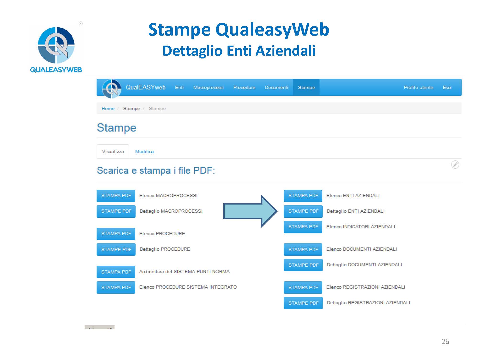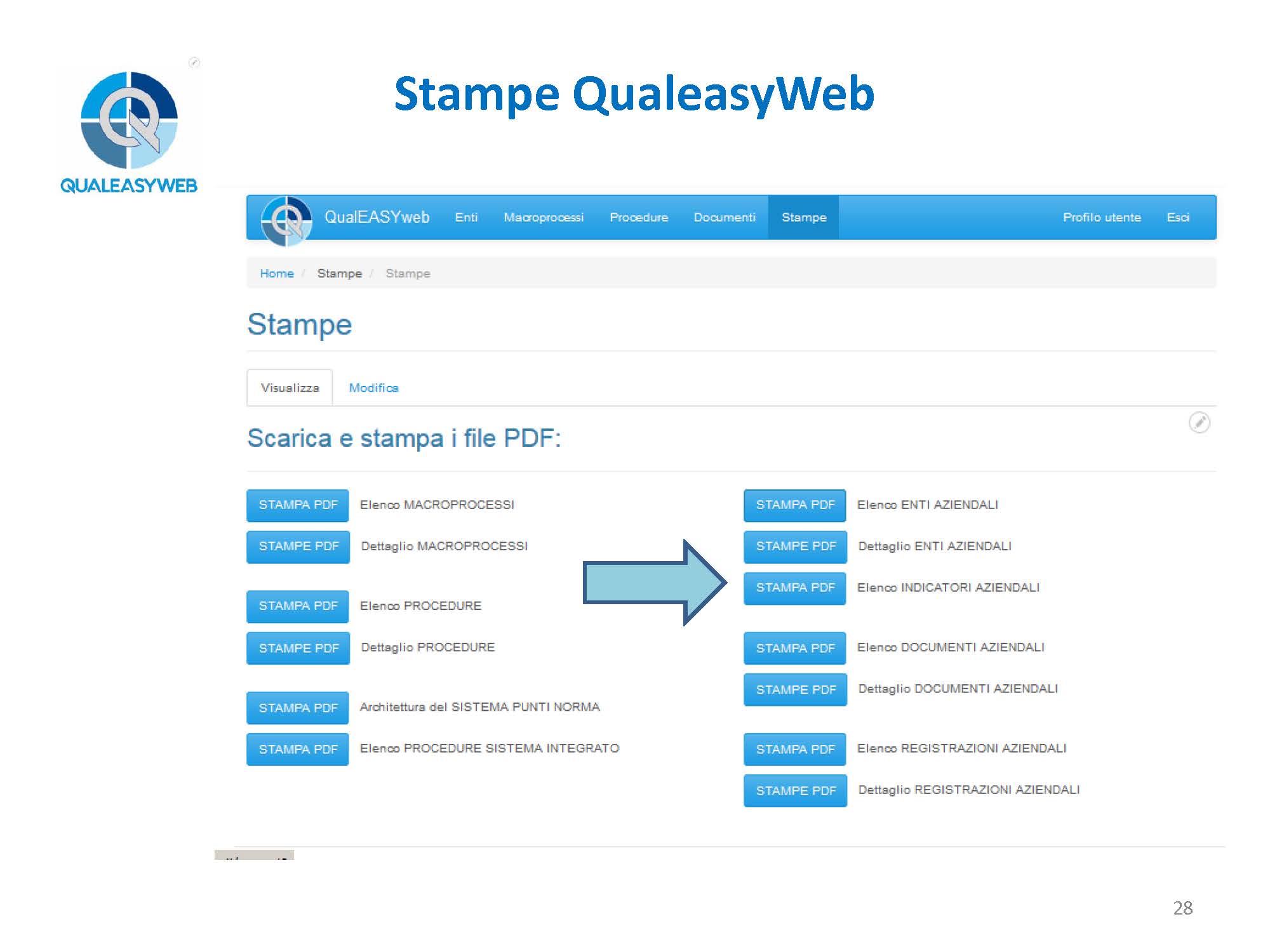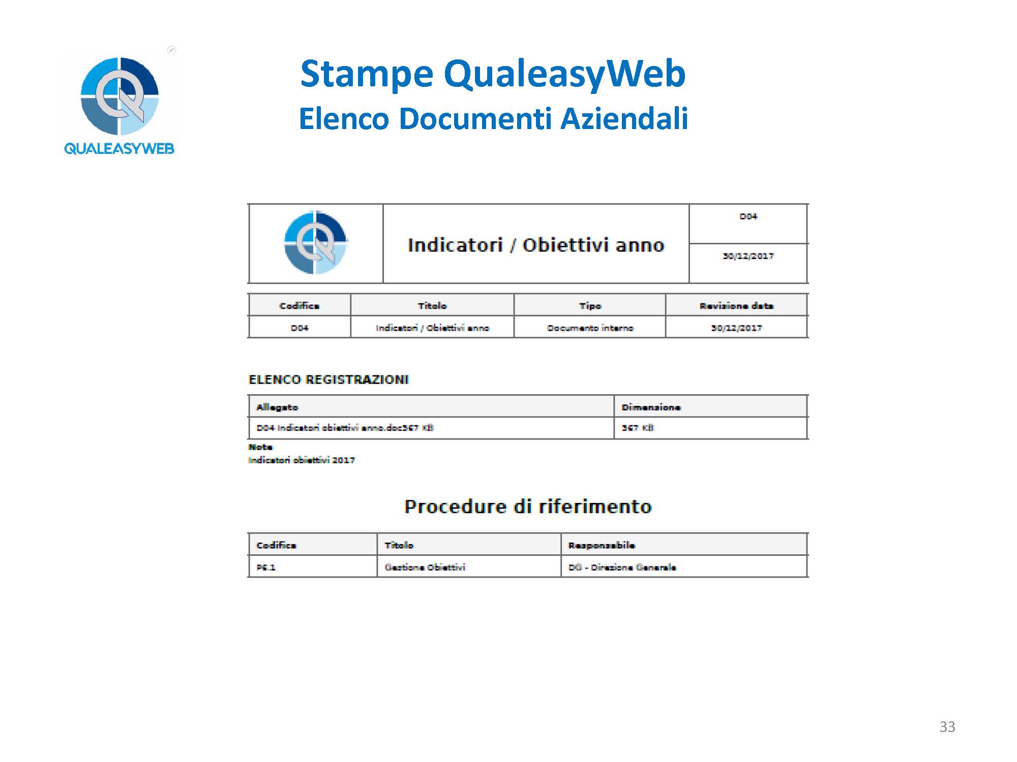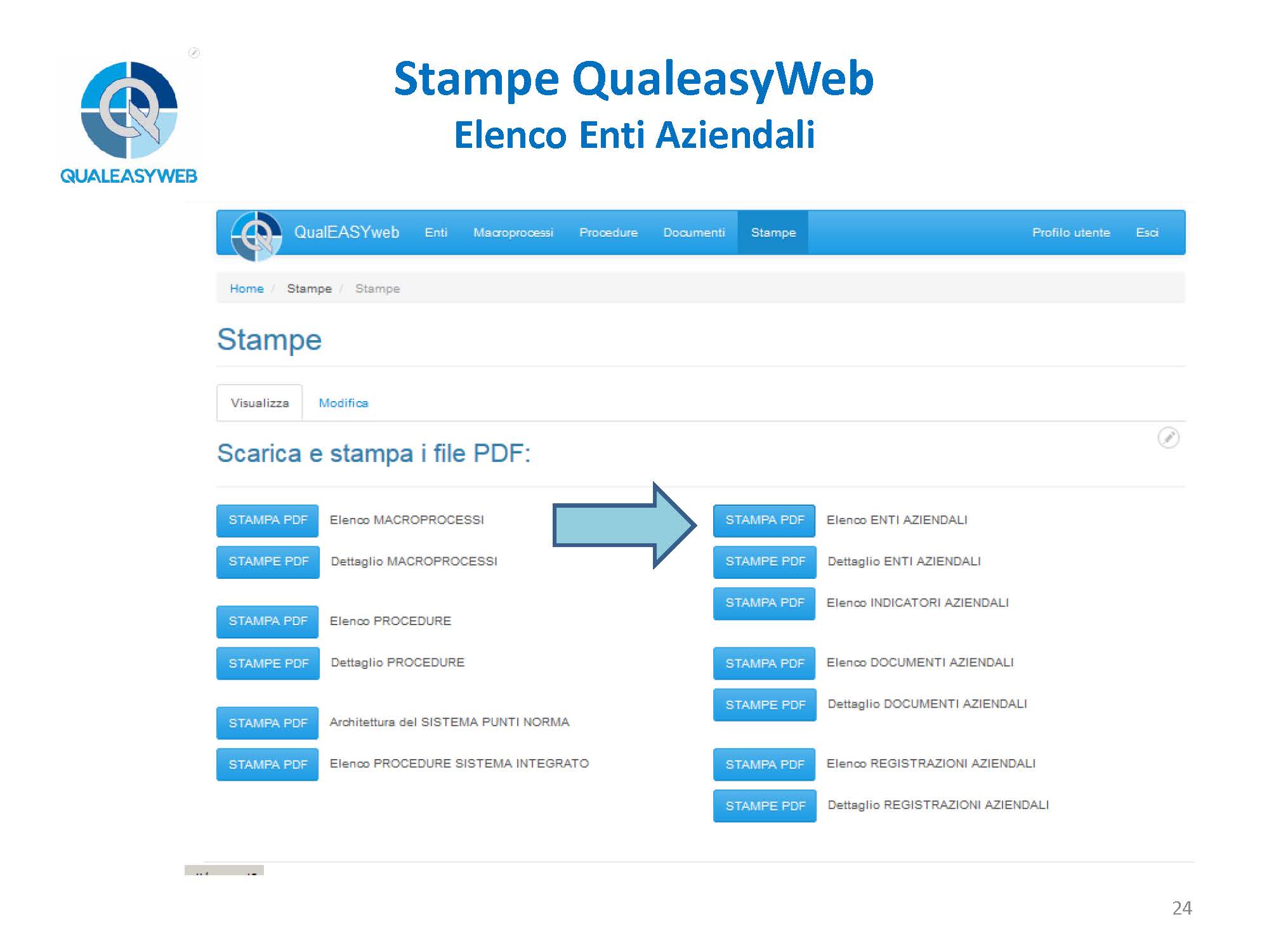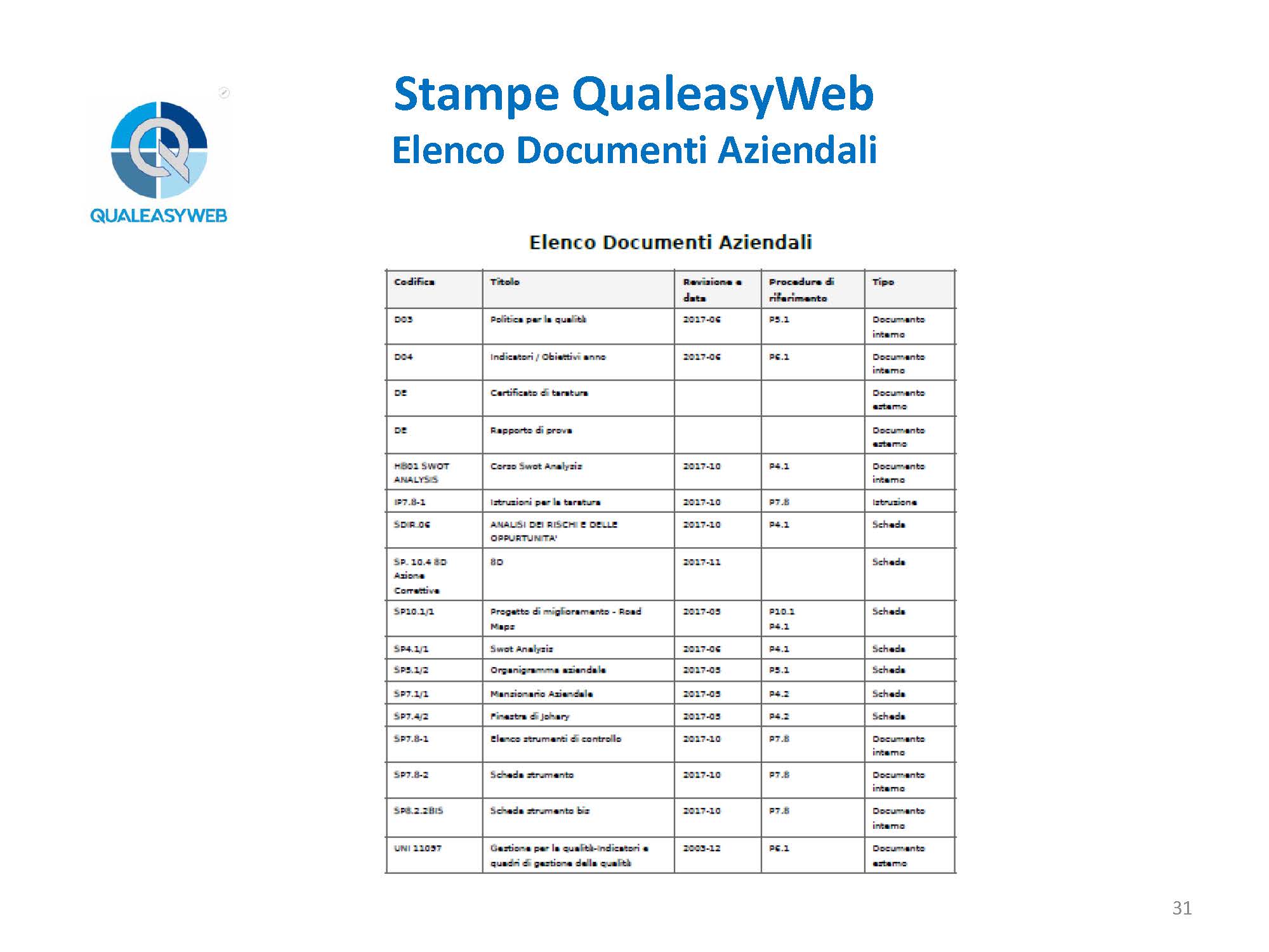 nel momento in cui abbiamo una 14000, una 16949, una 45100, abbiamo un elenco di più procedure che vengono identificate in base a delle colorazioni differenti, permettendoci di individuarle rapidamente all’interno del sistema integrato, - l’elenco e il dettaglio degli enti aziendali,
