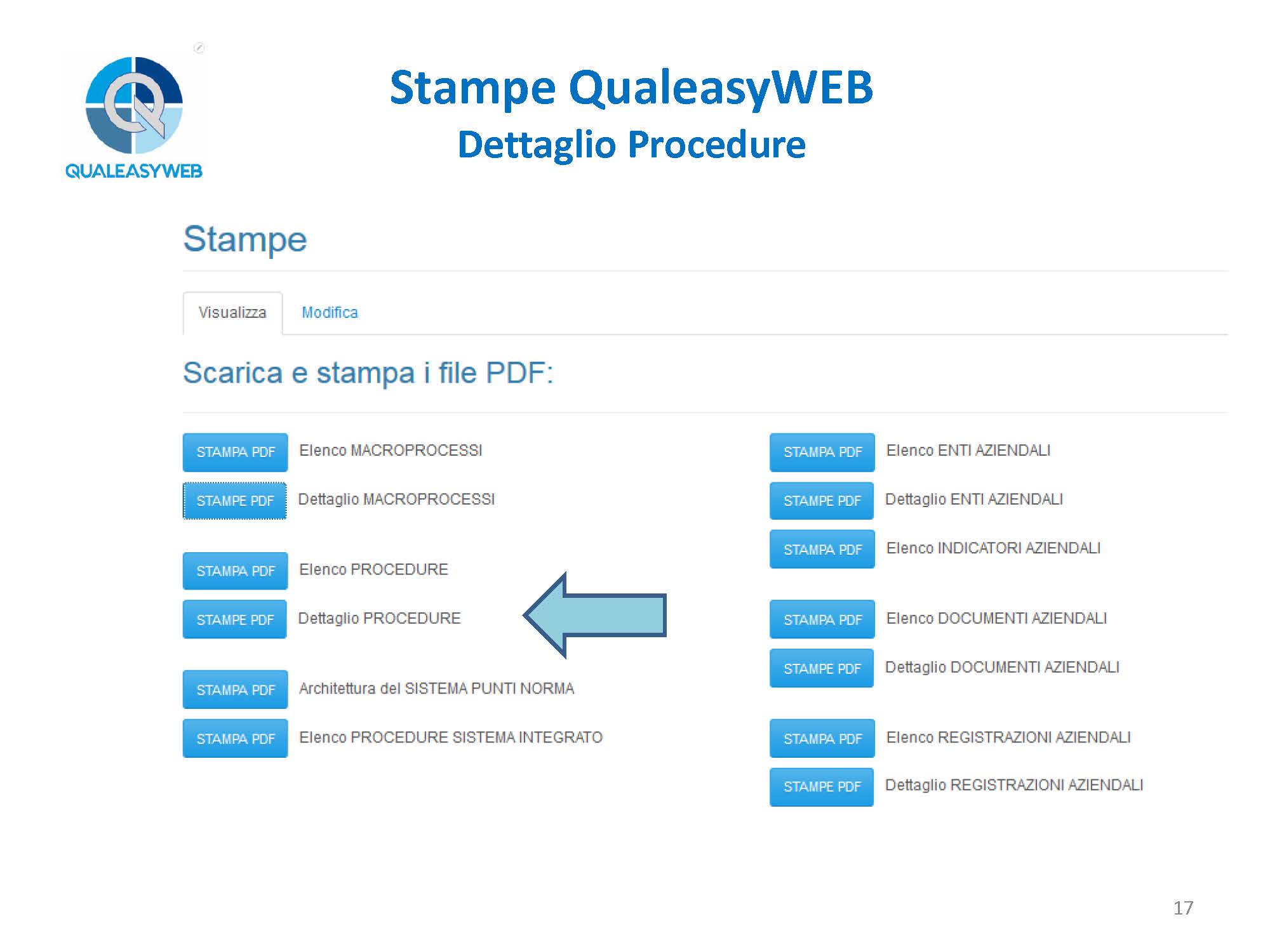 - le procedure che sono state create, esaminandone l’elenco o il dettaglio,