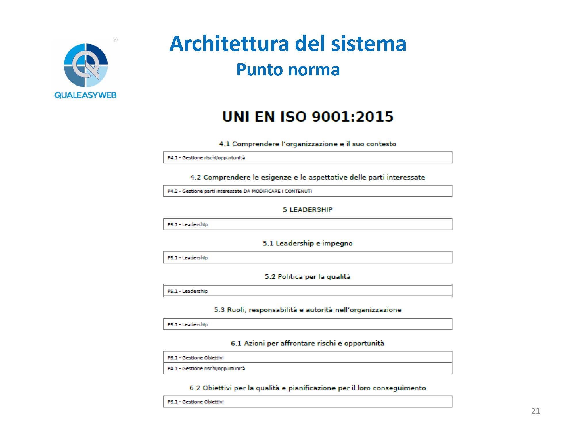 - l’architettura del sistema riguardo i punti norma,