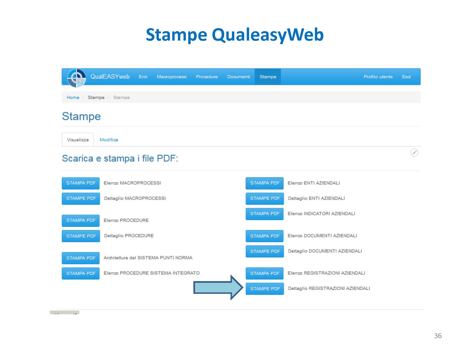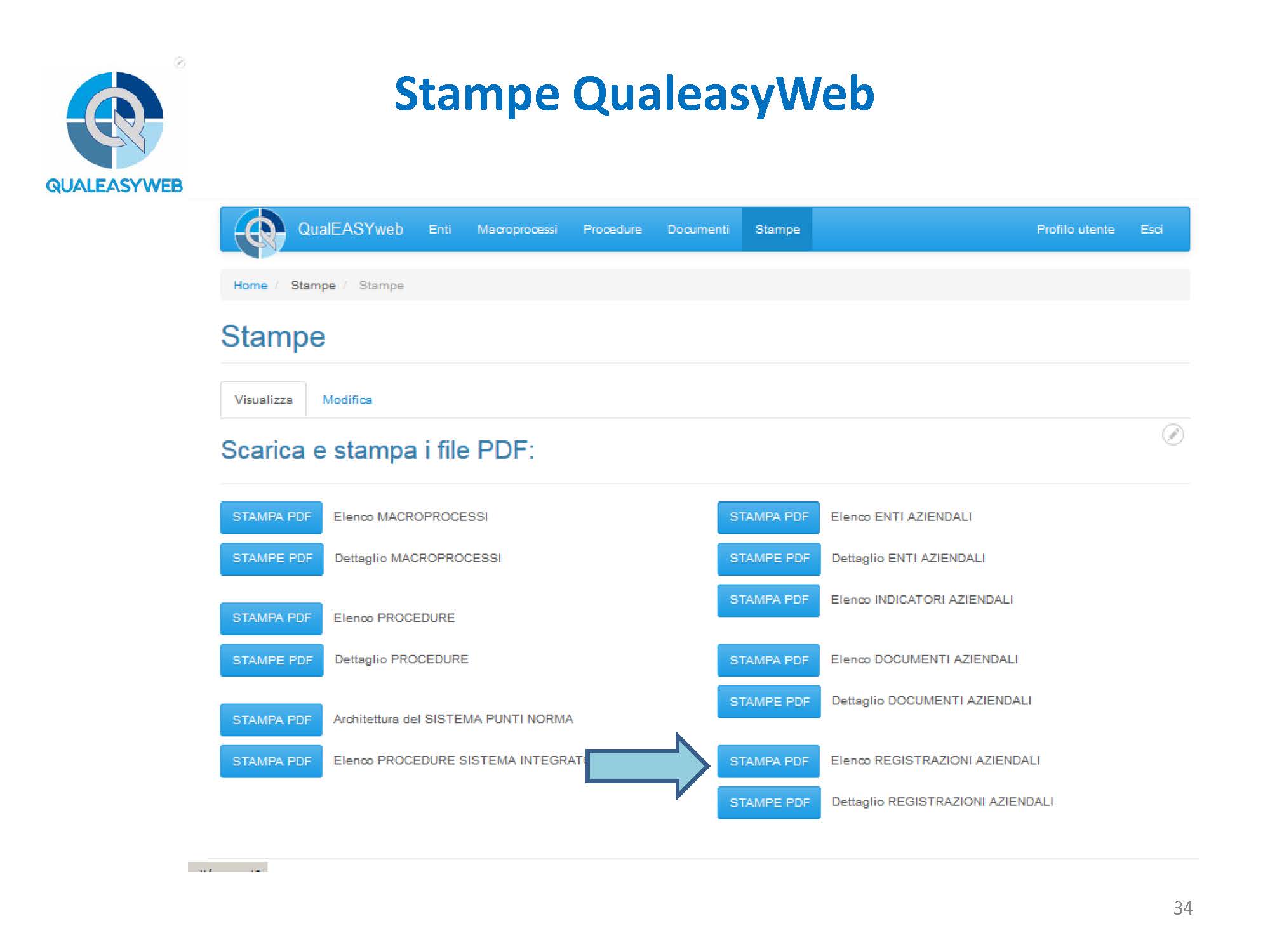 - l’elenco e il dettaglio delle registrazioni aziendali.